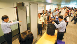 無論通關(guān)后或登機(jī)前,都有安檢人員特別“伺候”,把每一個旅客的行李都打開檢查。男性安檢人員有時還要檢查女性的衣物,引來一陣尷尬。