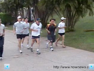 中新網9月12日電 由于馬英九非常喜歡跑步和游泳,臺灣安全部門為此特別要求所有的特勤人員每45天都要接受一次體能測驗,受測人員必須在一天之內同時完成跑步3000米、游泳500米以及伏地挺身仰臥起坐等各種測驗,要是沒有過關,立刻遣回原單位。