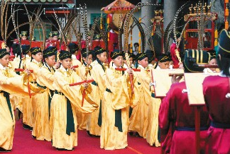 中新網9月28日電 臺北市孔廟過去都是用六佾舞祭孔,今年因孔廟整修完畢,加上馬英九將以貴賓身份出席孔廟祭典,特別擴大規模以天子之禮的八佾舞呈獻上天,對孔子表達最崇高的敬意。