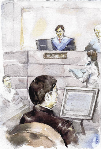 法庭狀況模擬圖(來源:臺灣《聯合報》)