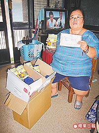 楊女士展示“減肥奶粉”,無奈表示,因長期受體重超重所苦,才會輕易被說服購買。(圖:臺灣《蘋果日報》)
