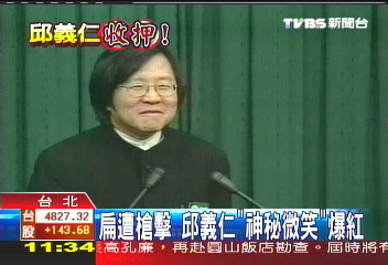3·19槍擊案發生的第一時間,邱義仁更出面微笑召開記者會,說子彈就在陳水扁身上,這也成了他最著名的“秘書長微笑”。(圖片來源:臺灣TVBS)