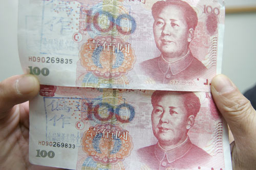 外傳由臺灣偽鈔集團所印制假人民幣在島內現身