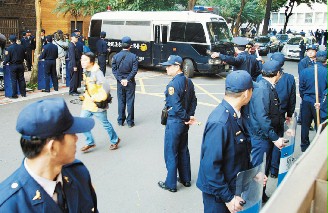 警察不敢掉以輕心,一字排開并分持盾牌、警棍將臺北地院四周團團圍起,進行管制,還有便衣刑警錄像搜證。特勤維安人員除穿插在警方陣勢中,法庭內外更是到處可見。