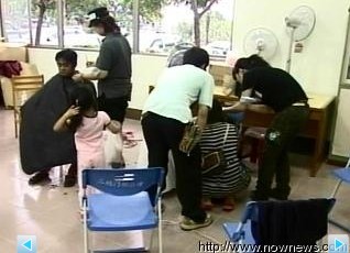 中新網8月17日電 綜合臺灣媒體報道,屏東三地門的活動中心,目前安置將近300位災民,卻只有一個廁所,又常常停水,災民要洗澡洗頭,就得大排長龍。16日下午,剛好有一群美發師到收容中心當義工,結果大人、小孩爭相剪頭發,大家都說,頭發剪掉,不但方便清洗又涼爽多了。