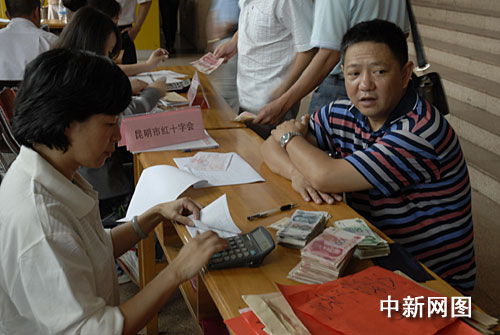 中新網昆明8月21日電(史廣林)昆明市紅十字會、昆明市慈善總會今日開始聯合在全市范圍內開展為臺灣災區募捐活動,僅一下午就收到捐款近19萬元。