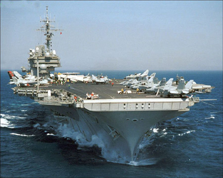 其實,“小鷹”號并非首艘穿行臺灣海峽的美國航母。