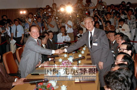 成立之初,可說是兩會協商的小陽春。海協會首任會長汪道涵和海基會首任董事長辜振甫,不僅達成“九二共識”,還建立了兩會定期之制度化協商機制。新加坡、上海、北京,處處留下兩會協商的身影。但經1996年臺海危機以及1999年的“兩國論”事件,兩會協商被臺灣當局惡意中斷。2005年,辜汪二老先后辭世,留下永生的遺憾。