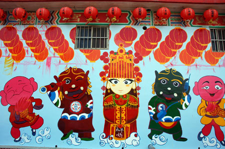 中新網10月19日 據“中央社”報道,臺灣云林縣西螺鎮福興宮太平媽祖將于二十二日起駕出巡繞境會香,管理委員會商請小學師生在后方墻壁創作Q版壁畫,造型可愛逗趣。與此同時,還特別推出Q 版媽祖公仔,只送不賣,上香拜拜添油香錢就可獲贈一個,限量666個。