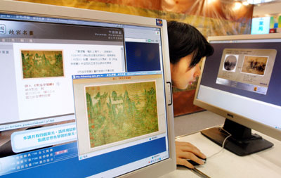 中新網(wǎng)10月23日電 據(jù)“中央社”報(bào)道,數(shù)字學(xué)習(xí)科技成果展二十三日在臺北世貿(mào)展覽館一館舉行。圖為臺北故宮博物院展出在線名畫欣賞教學(xué)。