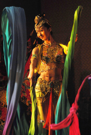 第二屆海峽兩岸臺北旅展十四日在臺北世貿展覽館開幕。十三日的展前記者會上,大陸參展團的傳統舞蹈水袖演出獲得好評!爸醒肷纭眻D 王飛華 攝