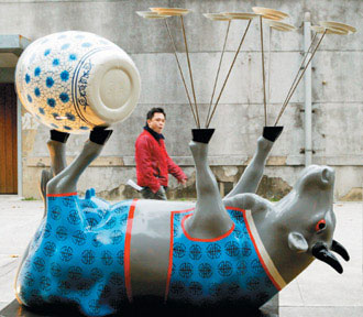 中新網12月26日電 據臺灣聯合報報道,牛年近了,一百余頭由藝術家、設計師、創意團隊打造的“春牛”23日進駐臺北華山創意園區,拉開臺北奔牛節序幕。
