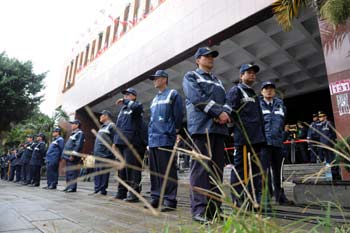 臺北地方法院29日開庭審理陳水扁羈押案,警方在地院四周部署大批警力,以防庭外挺扁與反扁民眾擦槍走火。