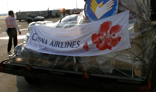 德國民間救援組織“航空無國界協(xié)會(huì)”捐贈(zèng)1噸的毛毯、睡袋及帳蓬等人道救援物資,也于今天清晨6時(shí)40分運(yùn)抵桃園機(jī)場。另外,加拿大政府將捐贈(zèng)5萬加幣,并捐助20萬枚氯錠,供災(zāi)區(qū)重建。