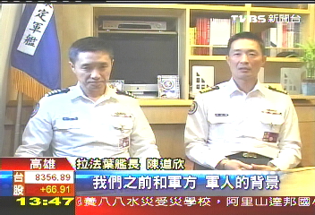 拉法葉艦長陳道欣:“我們之前和軍方、軍人的背景,可以說一點淵源都沒,但是道輝首先加入“中正預校”。”