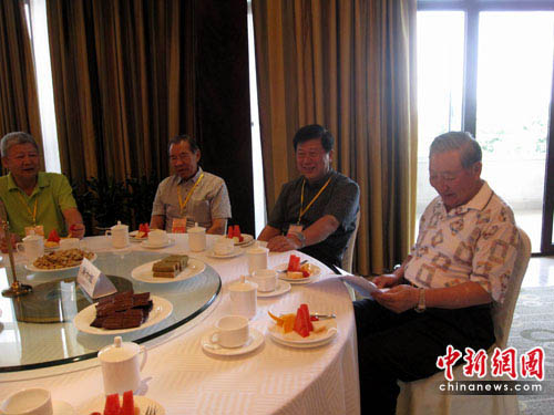 “軍人之間很容易溝通。”大陸退役將領趙國鈞中將在此間茶敘活動中如是表示。如他所說,剛一落座的將軍們,談的是上午的球賽,哪一桿最精彩,不一會就從球談到了酒。軍人出身的各位將軍談及酒個個神采飛揚。其中提到一種“深水炸彈”的喝酒方法,使得兩岸海軍退役將軍產生了共鳴。原來,將一只生雞蛋打入啤酒中,一起喝下去的飲酒方式,兩邊軍營中都有,而且叫法也相同。