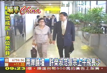 范振宗和許榮淑今天上午從桃園機場出發,搭乘華航班機到長沙,而國民黨代表團11點鐘則從松山機場搭包機直飛長沙,各自出發。