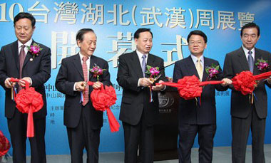 湖北省省委書記羅清泉、新黨主席郁慕明、前;鶗倍麻L焦仁和、大陸當代畫家周韶華和臺灣藝術家李奇茂等,21日上午皆出席“2010臺灣湖北 (武漢)周─荊楚文化聯展”開幕式典禮。