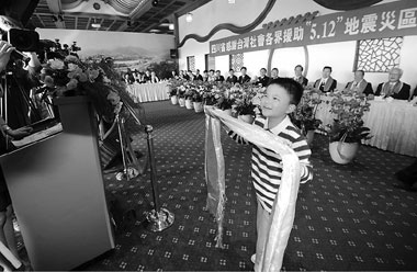 5月24日下午,一次特別的聚會——四川省感謝臺灣社會各界援助“5·12”地震災區見面會在臺北圓山飯店昆侖廳舉行。曾經深入“5·12”汶川特大地震災區的臺灣救援隊、醫療隊、志愿者、援建單位和文娛界以及媒體代表歡聚一堂,回憶和感受血濃于水、兩岸一心的同胞情深。