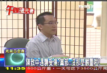 傳陳致中在處理一件案子時,因委托人雙方發生爭吵,出面勸架時被抓到滿身傷。圖片來源:臺灣TVBS