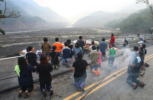 中新網(wǎng)8月15日電 莫拉克臺風(fēng)帶給臺灣嚴(yán)重災(zāi)情,高雄縣甲仙鄉(xiāng)小林村大批居民被土石流淹沒。甲仙鄉(xiāng)公所今天上午請千佛山協(xié)助為小林村9到18鄰遭淹埋的罹難村民,舉辦頭七法會,現(xiàn)場擁進千余名家屬,哭聲不斷,場面令人鼻酸。