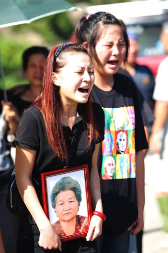 據(jù)臺灣《聯(lián)合晚報》報道,上午9時,法會在鄉(xiāng)公所旁道路上搭棚子舉行,現(xiàn)場擠爆,30余名法師帶領(lǐng)一千余名家屬誦經(jīng)、跪拜,家屬哭斷腸,場面哀凄。接著法師帶領(lǐng)家屬招魂,家屬更是悲慟到難以自抑。