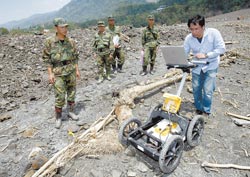 搜救人員表示,今天會再運送兩臺儀器到小林村幫組搜尋,因災難發生當時很多人在屋內,故會先用儀器探測找出房舍再開挖。他們介紹儀器說,“電磁波探測儀”用來找尋地面下的石油、探礦,探測深度達十米;“透地雷達”則是發射雷射波,探測地面下是否有物體存在。