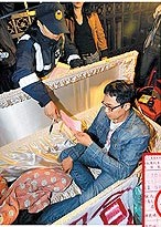 朱政騏強調,“臺灣人民若不起來反對牛肉進口,未來每年都會有人因此躺進棺材!鼻啊傲⑽绷_文嘉昨晚也前往關切,羅還開玩笑說:“應該換大一點的棺材,這樣聲援同學就可以一起躺進去!