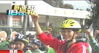 周美青輕便裝扮赴嘉義小學 騎單車小試身手(圖)