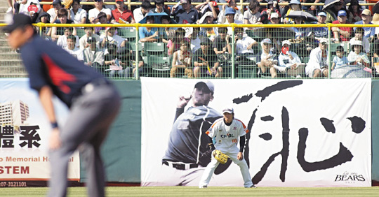 白底黑字的“恥”字,在全壘打墻二十三面廣告牌中,顯得格外搶眼,這塊廣告牌掛在左邊(左外野)數(shù)來(lái)第二塊位置,剛好正對(duì)熊隊(duì)休息室,也隱含意義。