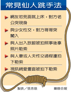 中新網3月17日電 據臺灣《聯合報》報道,“要不要一起賺大錢?”16歲的陳姓援交女上網發現,男子徐德欽、謝丁玄征求仙人跳女主角,認為比援交好賺而加入;從去年6月起,這伙人以援交方式設局仙人跳至少6次,詐財上百萬元(新臺幣,下同)。