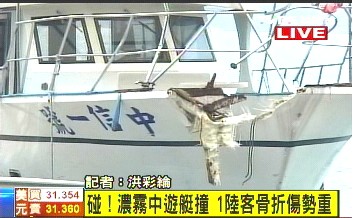 上午11點多,一艘滿載游客的游艇疑似受濃霧影響,視線不良,在停靠碼頭時,直接追撞到前方的游艇,游艇上23名乘客是來自大陸的游客,大部分年紀都比較大,不少人還是退休醫師,游客回想當時情況,還是非常害怕。