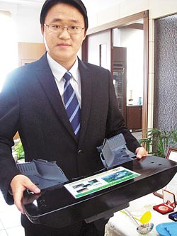 他的第一件發明作品“濾油功能盤”,為他贏得海外肯定,前年獲韓國首爾國際發明展金牌、去年獲得馬來西亞發明展銀牌。他笑說,一開始是因為觀察媽媽煮菜,總會在菜盤下方墊湯匙,好讓菜汁流到盤子另一頭,他就發想何不讓盤子變聰明?于是發明改良一款傾斜式盤子,食物盛在高處,湯汁順勢流到低處,吃東西即可避免吃到“油水”。
