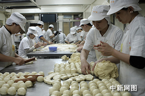 走進(jìn)詹益恭負(fù)責(zé)的阿明師老店的工廠里,記者了解到太陽餅制作的全過程,也終于知道太陽餅之所以在味道和口感上與眾不同的“秘訣”。太陽餅制作共五道工序。在按照傳統(tǒng)配方選取中筋面粉,低筋骨后,要將面鞣到合適的軟硬度。接著分成雞蛋大小的面團(tuán)后加入“酥”,這個(gè)所謂的“酥”是讓面皮酥軟的關(guān)鍵材料。接著搟皮要層次夠,且力道均勻,裹入內(nèi)餡的牛舌狀面皮厚度需非常平均。在包入麥芽糖餡的時(shí)候完全依靠師傅的經(jīng)驗(yàn)和細(xì)心。包多包少,手法的生熟都會影響到最后出爐成餅的質(zhì)量。最后烘烤的時(shí)候,根據(jù)餅的大小,調(diào)節(jié)溫度和時(shí)間。時(shí)間上的控制直接影響到麥芽餡的沸騰和蒸發(fā)程度,從而影響到口感。烤的時(shí)間過長則餡兒太硬,不夠的話又不夠香酥。