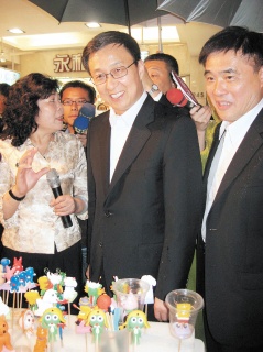 可能是晚宴都還沒消化,韓正來到夜市并未品嘗任何小吃,只有喝了一小杯茶葉攤商的奉茶,夜市內(nèi)一家藝品店老板戴忠泉送給韓正一只石刻作品,象征“時時好運、節(jié)節(jié)高升”,郝龍斌在旁強(qiáng)調(diào)“臺北市民就是這么熱情”,韓正笑著回應(yīng)說:“全都感受到了!”