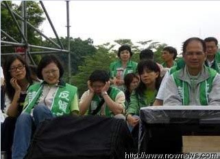 至于謝長(zhǎng)廷,也因?yàn)榫癫粷?jì),先到后臺(tái)稍做休息,而靜坐舞臺(tái)上,僅剩黨主席蔡英文和游錫堃率領(lǐng)部分黨公職坐在臺(tái)上,聽著新聞關(guān)心時(shí)事。此外,現(xiàn)場(chǎng)也可發(fā)現(xiàn),部分“立委”因靜坐一宿,體力已超出負(fù)荷,紛紛在舞臺(tái)上打起瞌睡,有的人甚至悄悄地消失不見了。