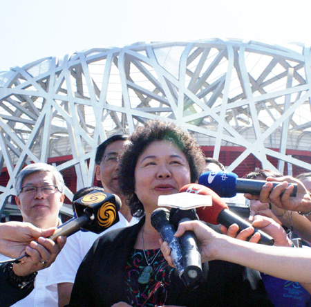 陳菊上午抵達(dá)鳥巢并進(jìn)入?yún)⒂^。她指出,鳥巢是一個(gè)非,F(xiàn)代化而且重視生態(tài)保護(hù)的體育場(chǎng)。高雄世運(yùn)會(huì)的主場(chǎng)館和鳥巢一樣也很重視生態(tài)保護(hù),鳥巢能容納9萬多觀眾,高雄世運(yùn)主場(chǎng)館則可容納4.5萬名觀眾,“不過我看到的是一個(gè)非,F(xiàn)代化、追求進(jìn)步、維護(hù)地球的建筑,這都是在歷史上一定會(huì)被重視的建筑!