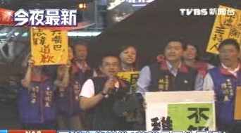 藍(lán)營議員高喊:“謝志偉道歉!民視負(fù)責(zé)!謝志偉道歉!”藍(lán)營議員算準(zhǔn)謝志偉上班時(shí)間,帶隊(duì)到民視大門口抗議,但兩排警力層層擋住大門口,臺(tái)北縣議員陳明義,腳進(jìn)不去,干脆用手丟雞蛋泄憤。