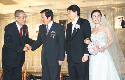 結婚酒會由吳伯雄證婚,馬英九貴賓致詞,馬英九以最夯的廣告詞“殺很大”,期勉新郎至少要生三個以上。馬英九也詢問新人婚后是否定居島內,當馬英九得到肯定答案后,隨后竟爆出“那就歸我管了”,讓現場笑翻天。