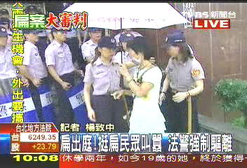 中新網6月16日電 據臺灣“今日新聞”報道,臺北地方法院16日上午開庭審理陳水扁弊案,并傳喚陳水扁與馬永成等多人進行對質,由于地方法院外有許多陳水扁支持者,由于旁聽席只有20席引發扁迷不滿,甚至一名男子還進入法庭大聲抗議,遭到審判長蔡守訓強制驅離,而這名扁迷的動作甚至還一度讓陳水扁受驚。