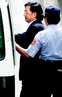 陳水扁多次行使緘默權,態度消極,上午他利用公設辯護人唐禎琪答辯的時間,在辯護書狀上以紅筆眉批并作筆記,這是扁最近一陣子首度表現出“參與”法庭活動的狀態。