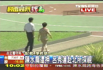 用餐后,在7點半再量一次血壓脈搏,一切正常;上午10點,呂秀蓮前往探望,北所也時時密切監控扁的情緒,避免發生意外。
