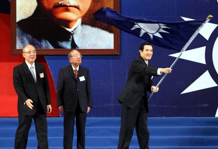 在主席監誓人、國民黨選監委員會召集人邱創煥的監交下,馬英九從卸任黨主席吳伯雄手中接下印信、黨旗,宣告“馬主席時代”來臨,國民黨將邁向以黨輔政的“完全執政、完全負責”新局。