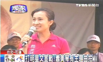 蕭美琴打選戰,有專屬主題曲,還拍攝MV:蕭美琴在花蓮的家出發,粉紅色面包車當宣傳車,素人入鏡,搭配光影交錯技巧;其實幕后操刀作詞曲、拍MV的,是某位女性天王級歌手的制作人和導演友情贊助。