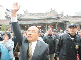蘇貞昌和保安宮結緣深,二○○八年“大選”時,身為“副總統”參選人的他,曾到保安宮祈福。圖片來源:聯合報