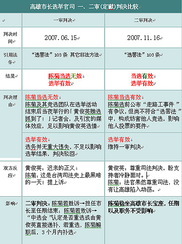 資料:高雄市長選舉官司一、二審判決比較