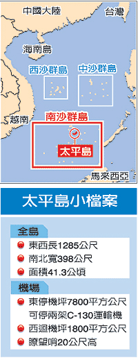 臺軍方從二00六年年中開始修建太平島機場跑道,相關官員指出,太平島跑道主要工程已在去年年底完工,陸軍負責施工的人員大部分已經回臺灣,只留下少部分人員進行最后的養護、驗收工作。