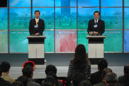 據臺灣東森新聞報道,馬英九、謝長廷“大選”中的第一次辯論從切割的屏幕畫面上看起來,謝長廷略比馬英九高了一點,而馬英九的身高原本就跟謝長廷有一段差距,看看當時的畫面,至少就差了十幾公分。