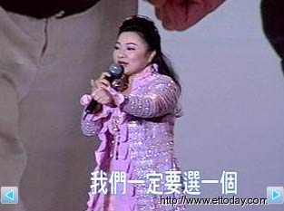 除了白冰冰外,閩南語歌壇“大姐大”陳盈潔也現身馬英九的場子。陳盈潔說:“這是我一生中最關懷的,幾號?2號!選誰?馬英九!”