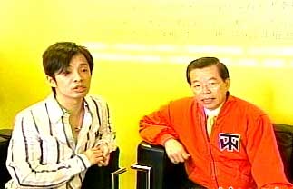 大炳擅長模仿謝長廷,謝長廷也模仿大炳“吞拳頭”,不過,拳頭吞不下去的謝長廷懷疑地說,“這樣對選情有幫助嗎”?